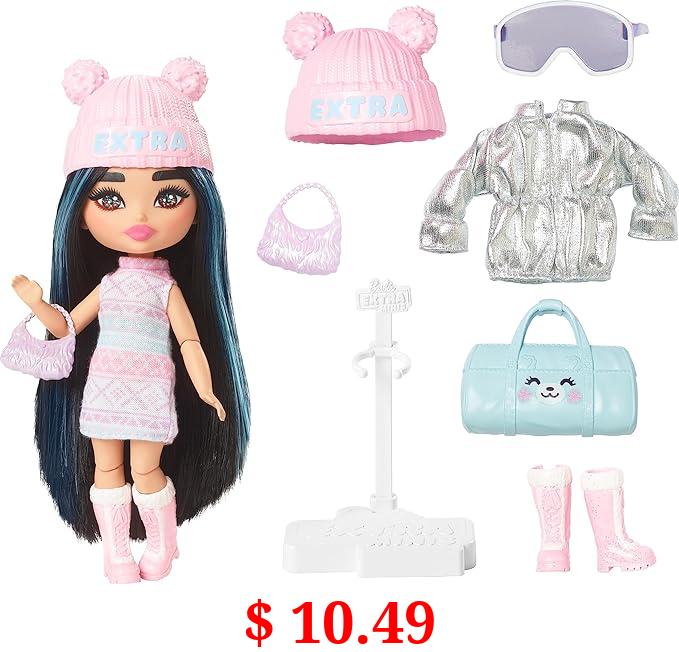 $ 10.49 Barbie Extra Fly Minis Travel Doll, Snowy Look with Icy Blue Highlights in Pastel Sweater Dress & Accessories