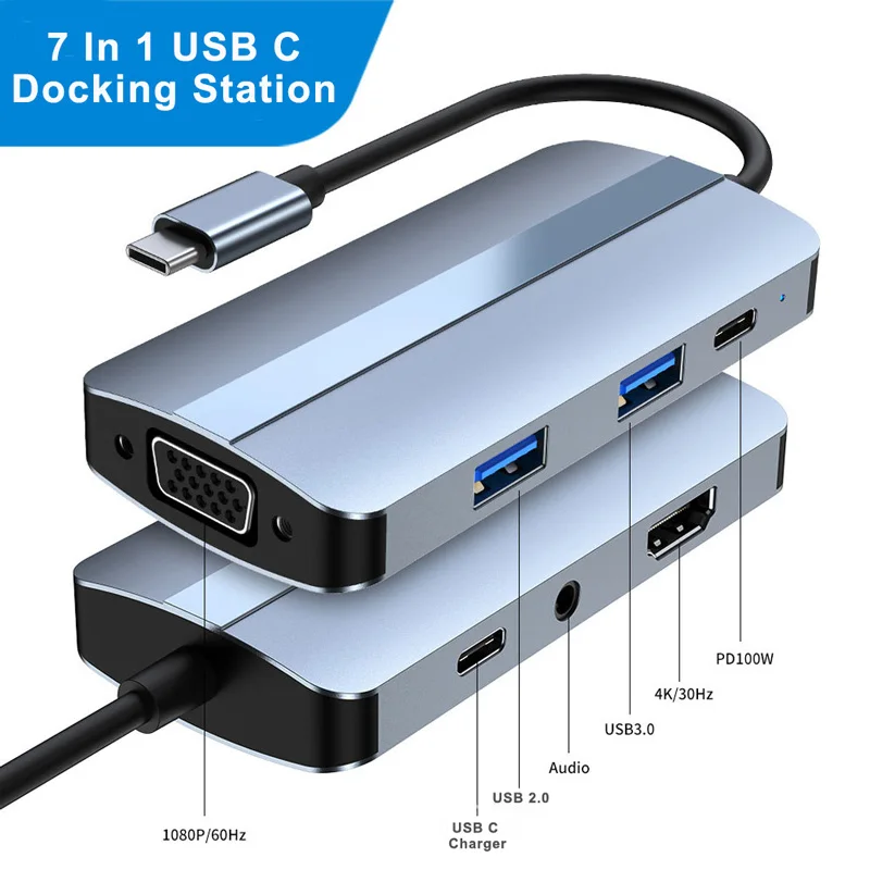 7 In 1 USB Docking Station Hub Type C To HDMI VGA 1080P TF/SD Card Reader Adapter For MacBook Air MateBook Pro Laptop Accessory - Купить с бесплатной доставкой