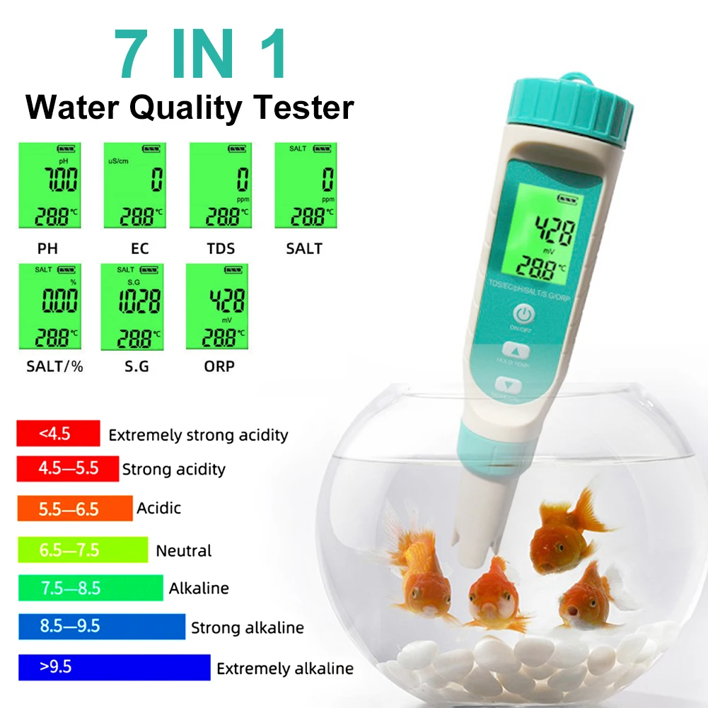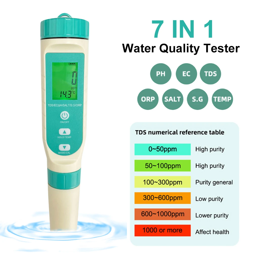 MFQURAhcHere you can buy 7 In 1 Water Quality Tester PH/TDS/EC/ORP/SG/Salinity/Temperature Measuring Pen Digital Water Monitor for Drinking Water Pools with free delivery to your post office.