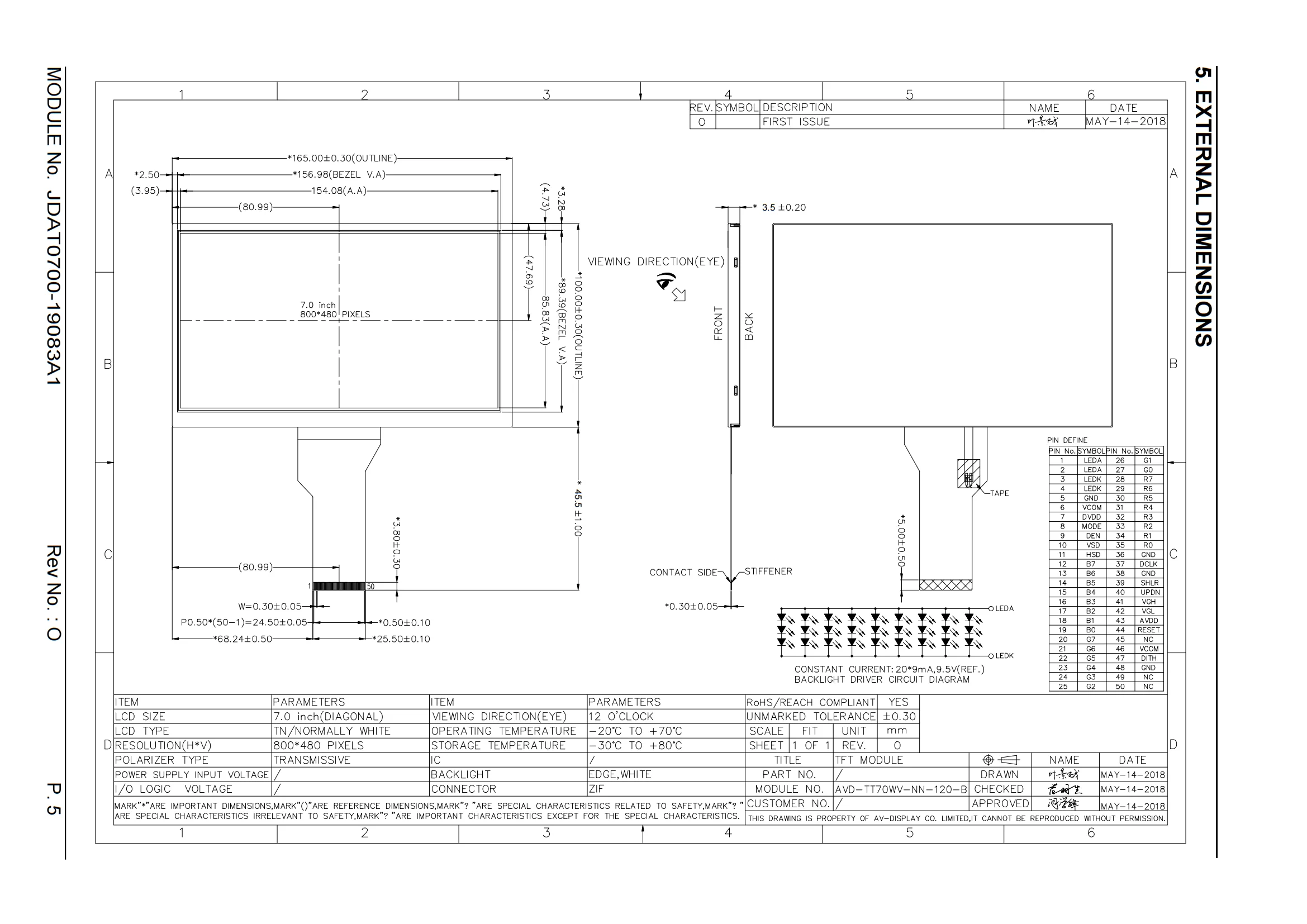 hjUtINAEcAHere you can buy 7 Inch 800X480 TFT Vertical LCD Panel Screen 7 Inch MIPI Interface LCD Display Module for Camera with free delivery to your post office.