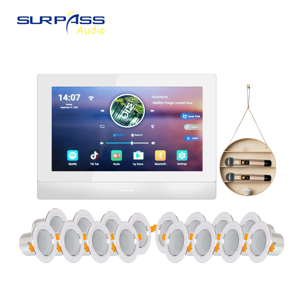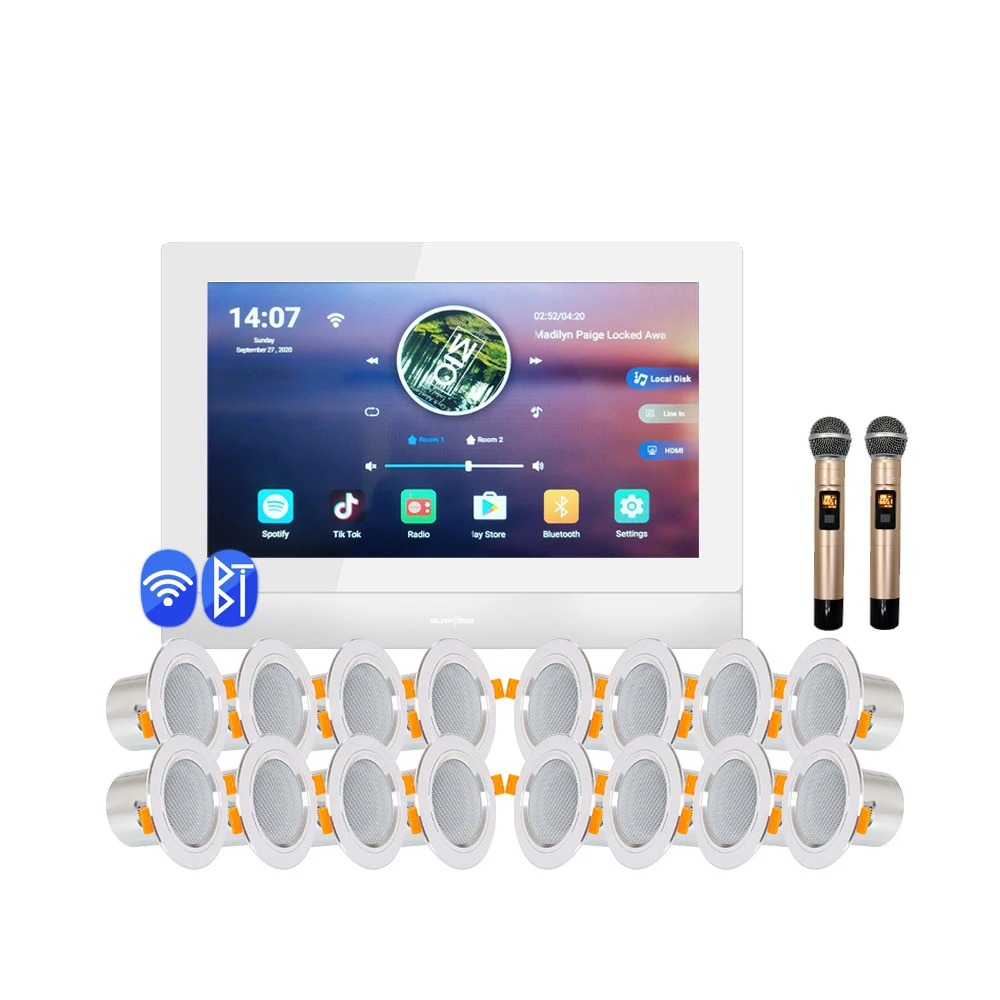 AauDGnlgczHere you can buy 7 Inch Touch Screen Blue-tooth Home Karaoke Music System In Wall Amplifier With 2 Wireless Microphone 16 Stereo Ceiling Speaker with free delivery to your post office.