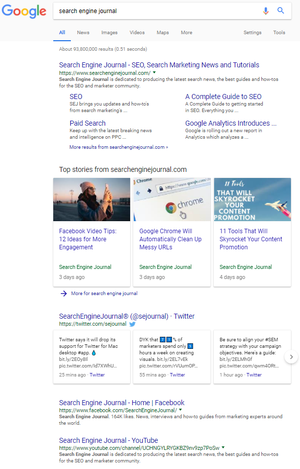 - Also, the inclusion of social media chiclets (icons) in the Knowledge Graph is a result of branding SEO combined with increasing the authority of your social media pages. If you want to own the whole list of (ideally) seven organic results on the first SERP for your brand, optimize all your assets. The ones that are doing it right have their social media channels show up in the SERP for their brands. Copy, rinse, and repeat.
