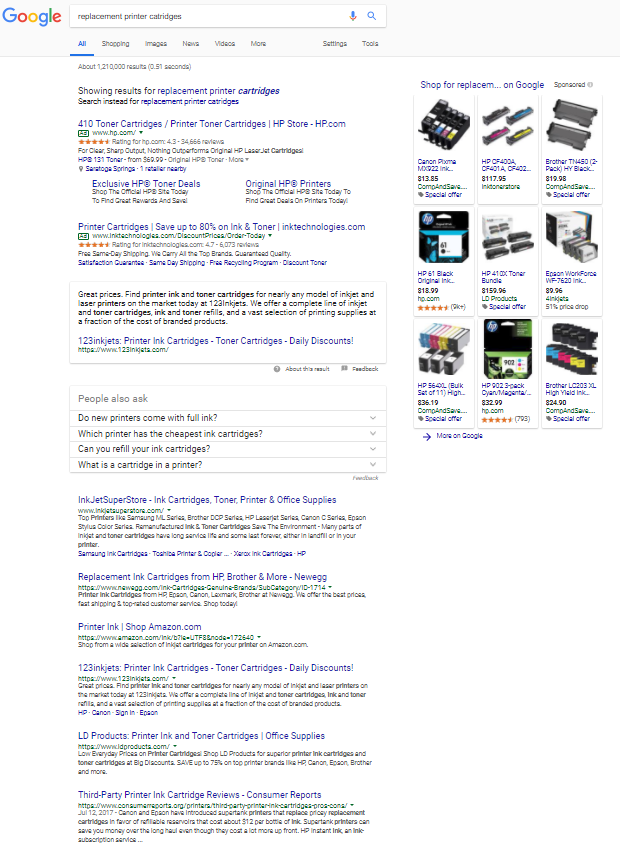 Let’s review seven areas of most search result pages that may help you expand your thinking when it comes to free competition and industry mining using Google, Bing, and other search engines.