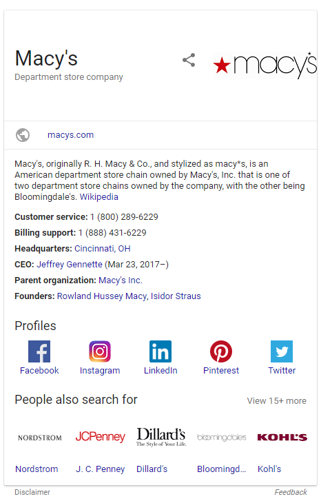 The Knowledge Graph’s existence in Google when performing a brand search is one of the more important things you can immediately notice (or notice missing – more below) on the right-side of the results when doing a search for a brand.