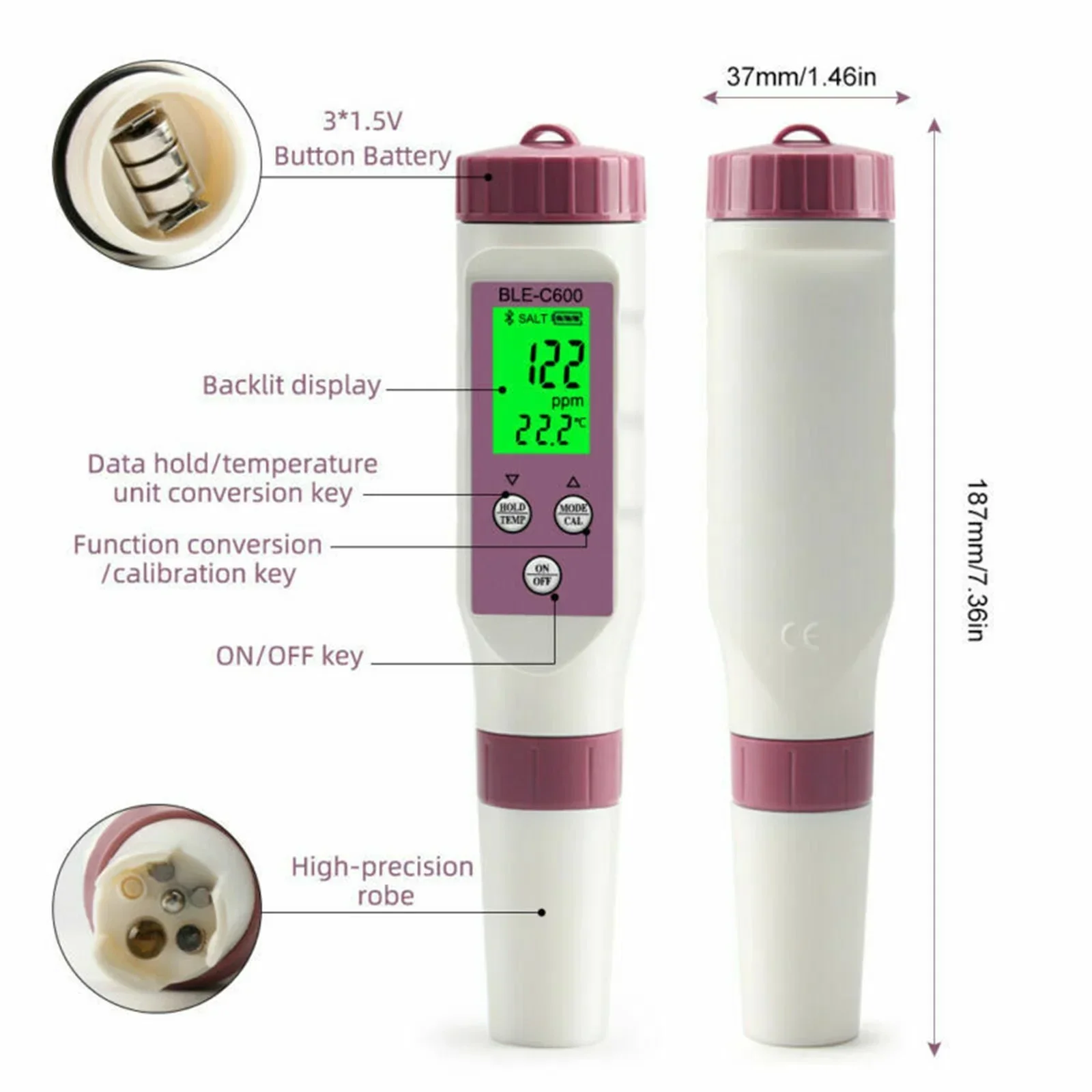 7 in 1 Digital Drinking Water Tester Pen Bluetooth Phone App Data Monitoring Smart Water Quality Detector Salinity Meter PH/TDS - Купить с бесплатной доставкой
