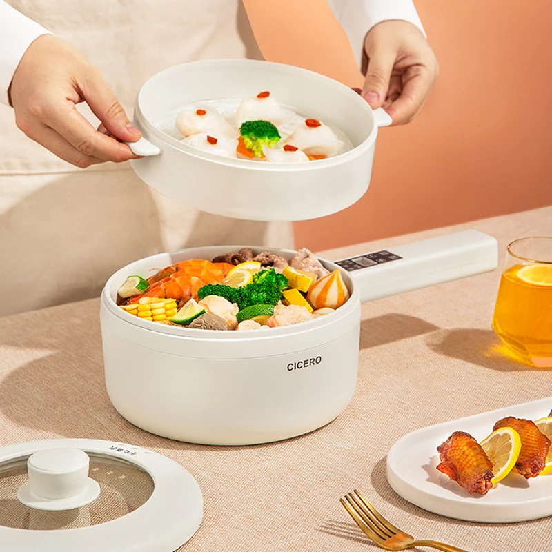 700W Electric Cooking Pot Hot Pot Portable Rice Cooker Multicooker Ceramic Liner Smart Electric Skillet Single/Double Layer 1.6L - Купить с бесплатной доставкой
