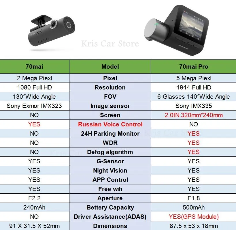 70mai отличия