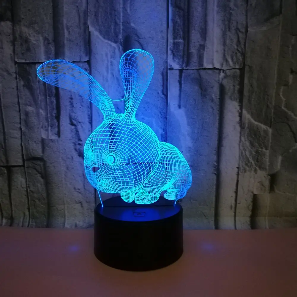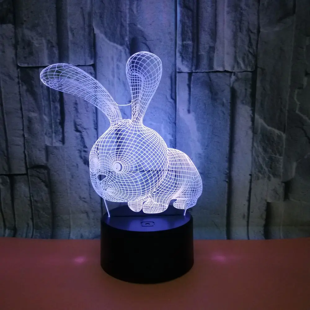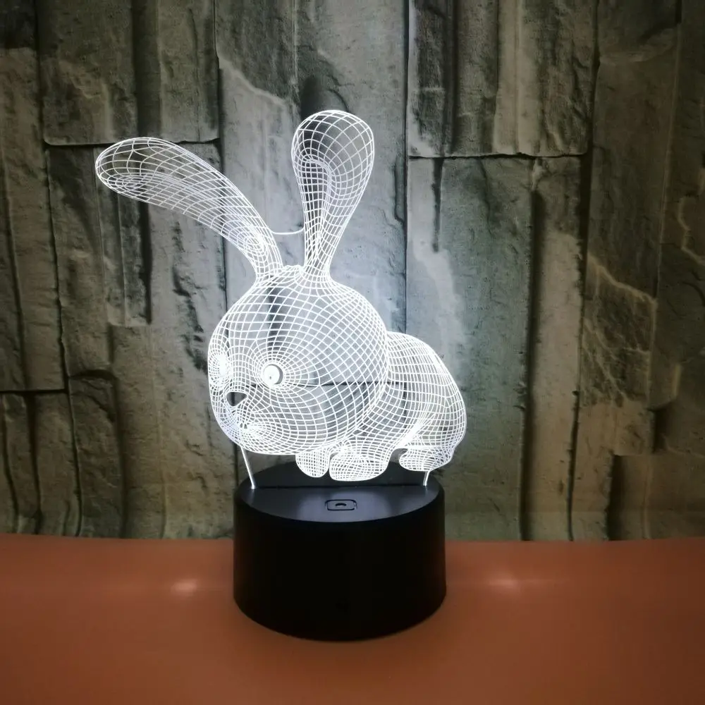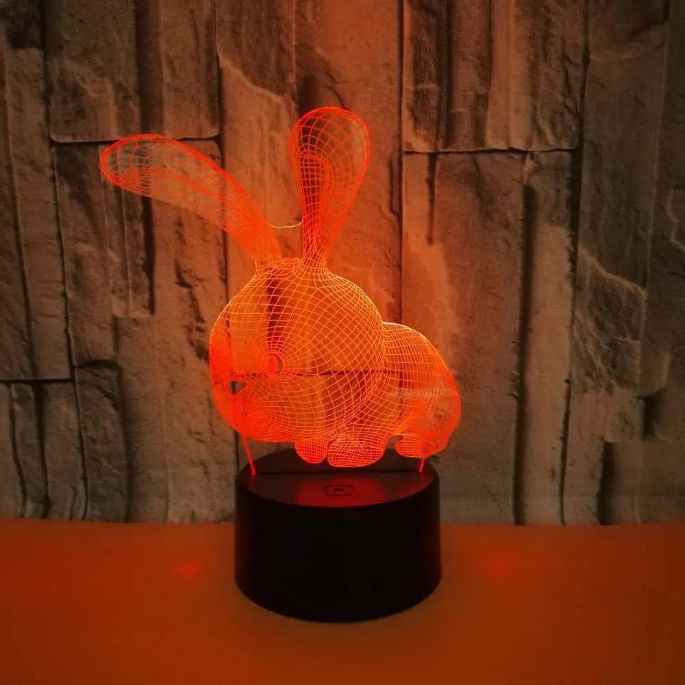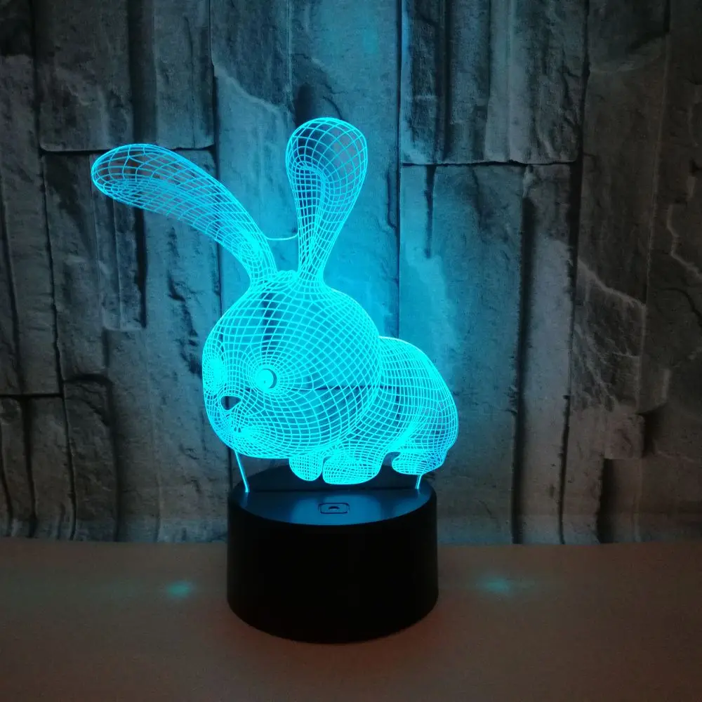7/16ColorsLED Night Light 3D Acrylic Light Table Lamp Rabbit 3D LED Light Kids Gift Valentine's Day Easter for Home Decoration - Купить с бесплатной доставкой