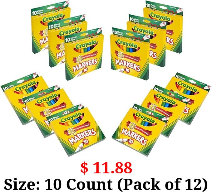 $ 11.88 Size: 10 Count (Pack of 12) Crayola Broad Line Markers (12 Packs), Bulk Markers for School, Coloring Markers for Kids, Teacher Classroom Supplies, Ages 3+