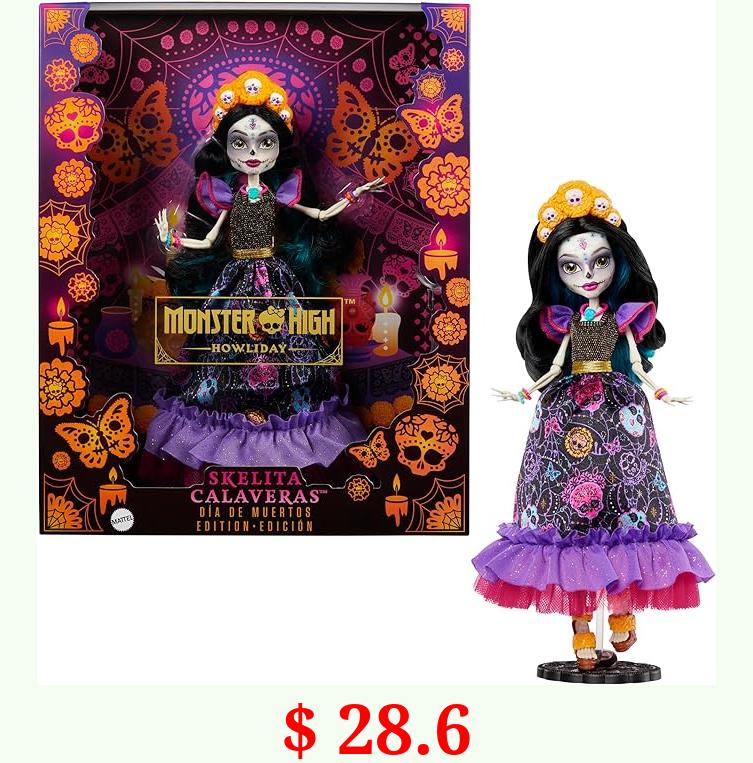 $ 28.6 Monster High Doll, Skelita Calaveras Dia De Muertos Collectible with Traditional Sugar Skull & Marigold Details