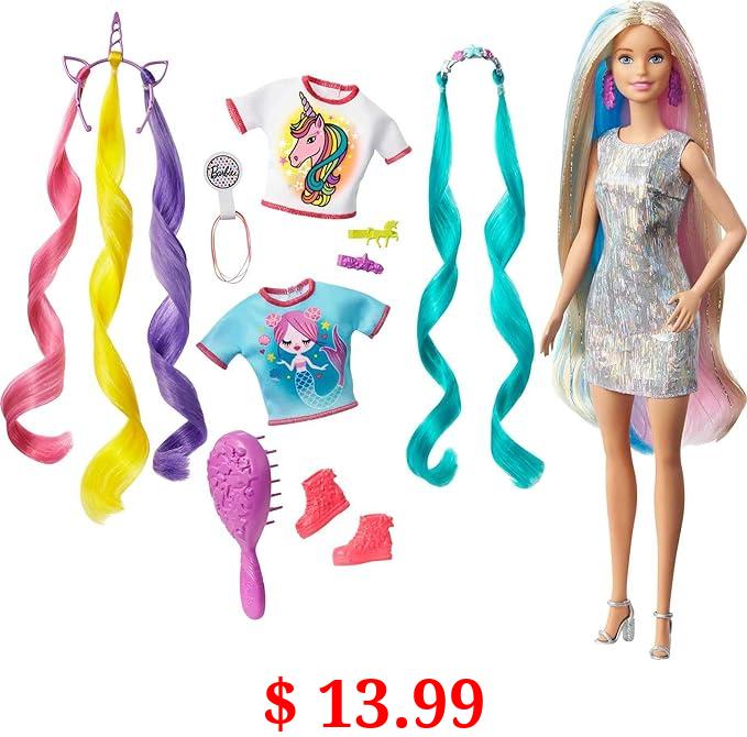 $ 13.99 Barbie Fantasy Hair Doll & Accessories, Long Colorful Blonde Hair with Mermaid & Unicorn-Inspired Clothes