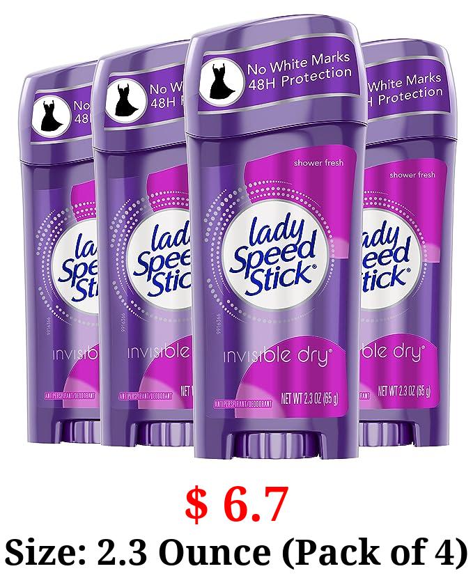 $ 6.7 Size: 2.3 Ounce (Pack of 4) Lady Speed Stick Invisible Dry Antiperspirant Deodorant, Shower Fresh, 2.3oz, 4 Pack