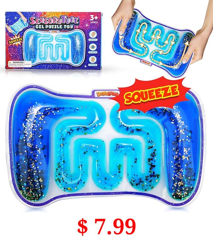$ 7.99 Squishy Sensory Toys for Kids - Fidget Toy Sensory Tube Filled with Colorful Goo, Glitter, Calming Toys for Kids with Autism, ADHD - Goodie Bag Stuffers, Fidgets for Classroom, Kids Prize(9'' X 5''