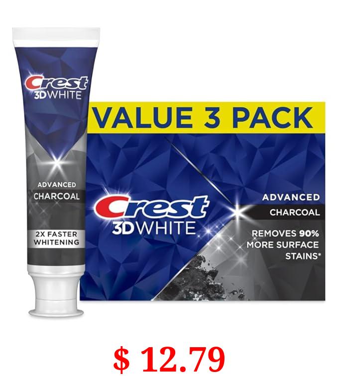 $ 12.79 Crest 3D White Advanced Charcoal Teeth Whitening Toothpaste with Fluoride, 3.3 oz, Pack of 3