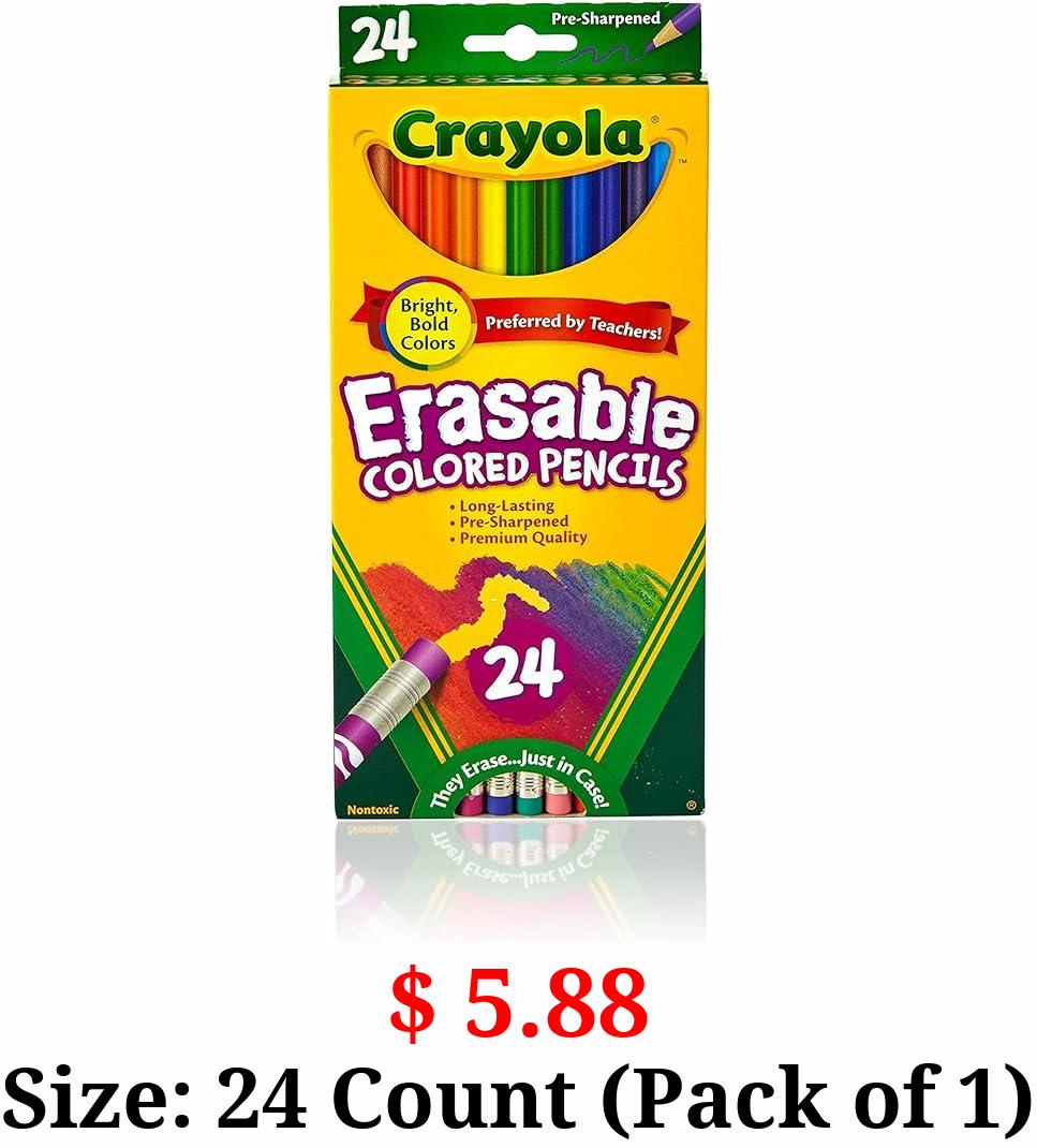 $ 5.88 Size: 24 Count (Pack of 1) Crayola Erasable Colored Pencils (24ct), Kids Colored Pencils for School, Back to School Supplies for Kids, Coloring Pencils, 6+