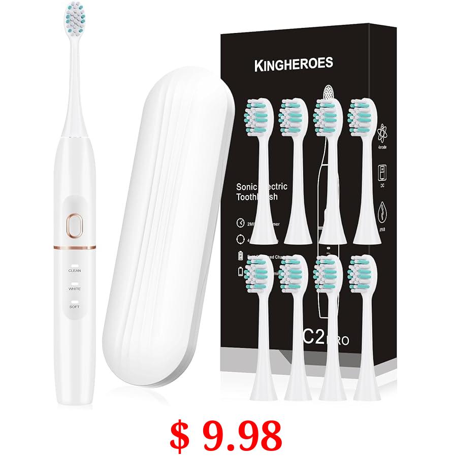 $ 9.98 kingheroes Electric Toothbrush Set, Comes with 8 Brush Heads & Travel Case,4 Modes with 2 Minutes Built in Smart Timer, One Charge for 60 Days, 42000 VPM Motor (White)