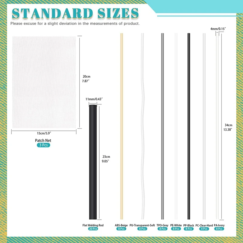 RAKFBFMrHere you can buy 75 Piece Plastic Welding Rods With Reinforcing Stainless Steel Mesh Kit 7 Types Plastic Welding Rods with free delivery to your post office.