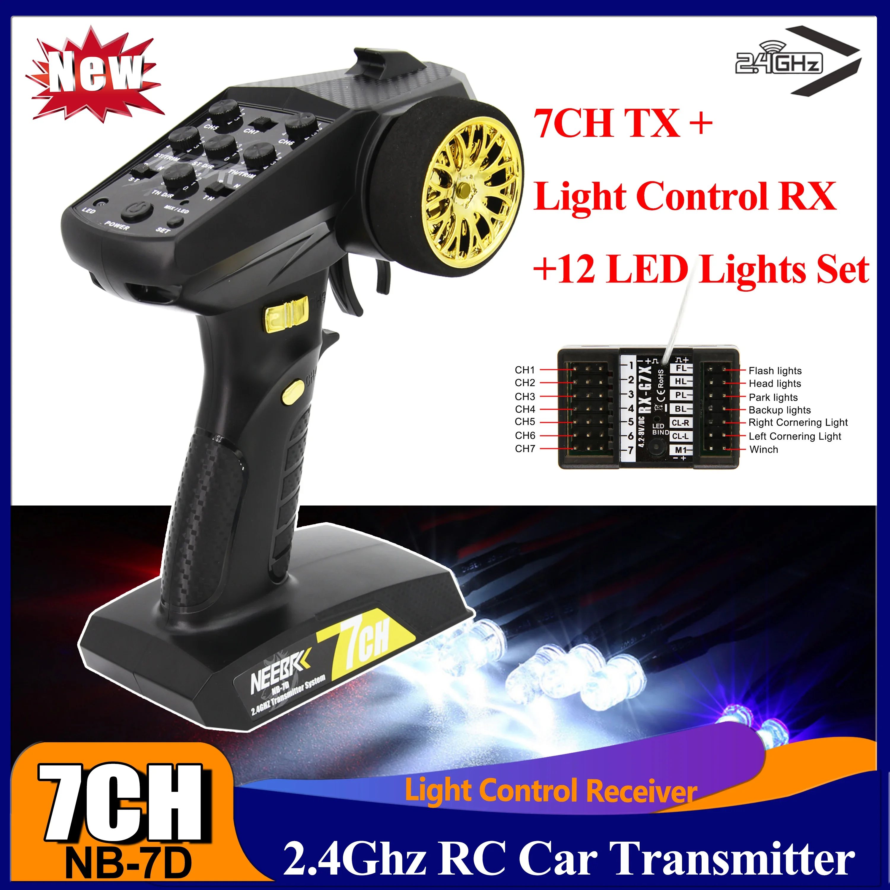 "7CH RC Car Transmitter Remote Controller Light Control Receiver 12 LED Light Set for RC Car Tank Boat Model PK DumboRC Radiolink" * Buy Now With Free Shipping Just For $41