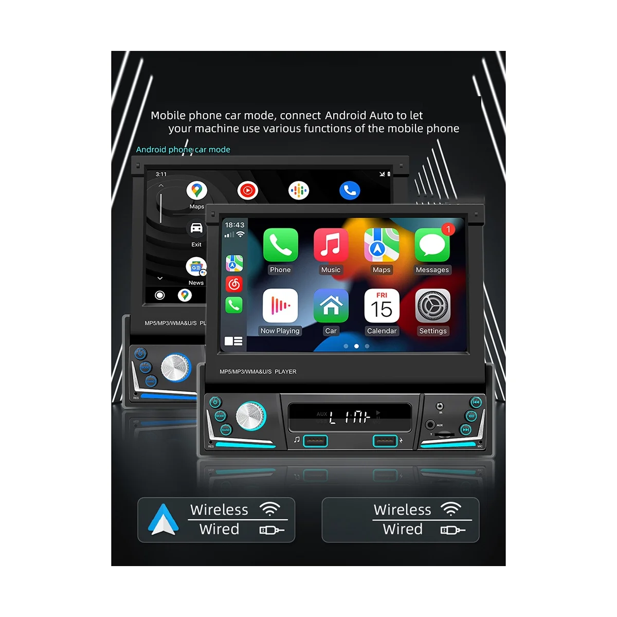 nSjCUKkhHere you can buy 7Inch Car Manual Telescopic Screen Wireless CarPlay Android Auto Car Portable Radio Bluetooth MP5 FM Receiver the with free delivery to your post office.