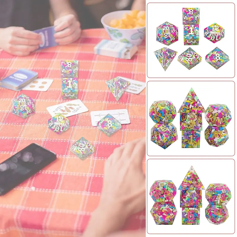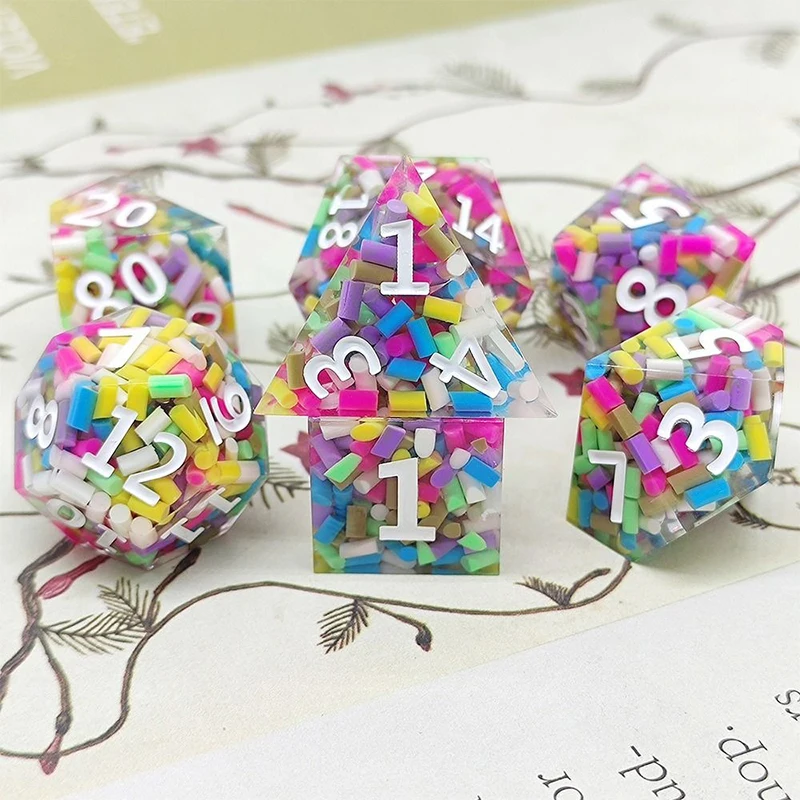 7Pcs Colorful Transparent Resin Solid Right Angle Team Running Multifaceted Dice Set Table Games Accessories Board Game Dices - Купить с бесплатной доставкой