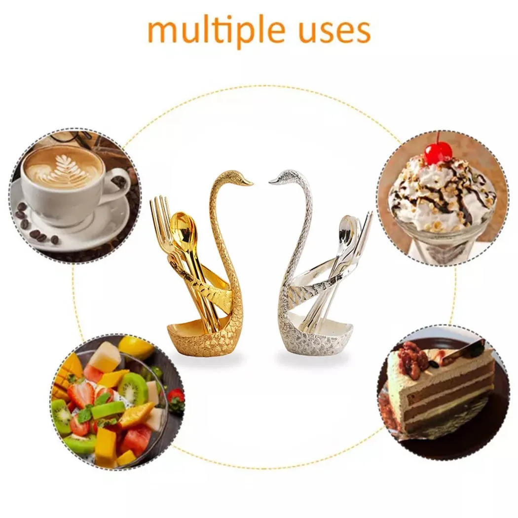 «7Pcs Swan Fruit Base Holder Spoon Set Salad Dessert Coffee Cake Tableware Delicate Gift Kitchen Decor Flatware Spoon Fork Set» по лучшей цене на рынке! Всего за 13$ (1235рублей)