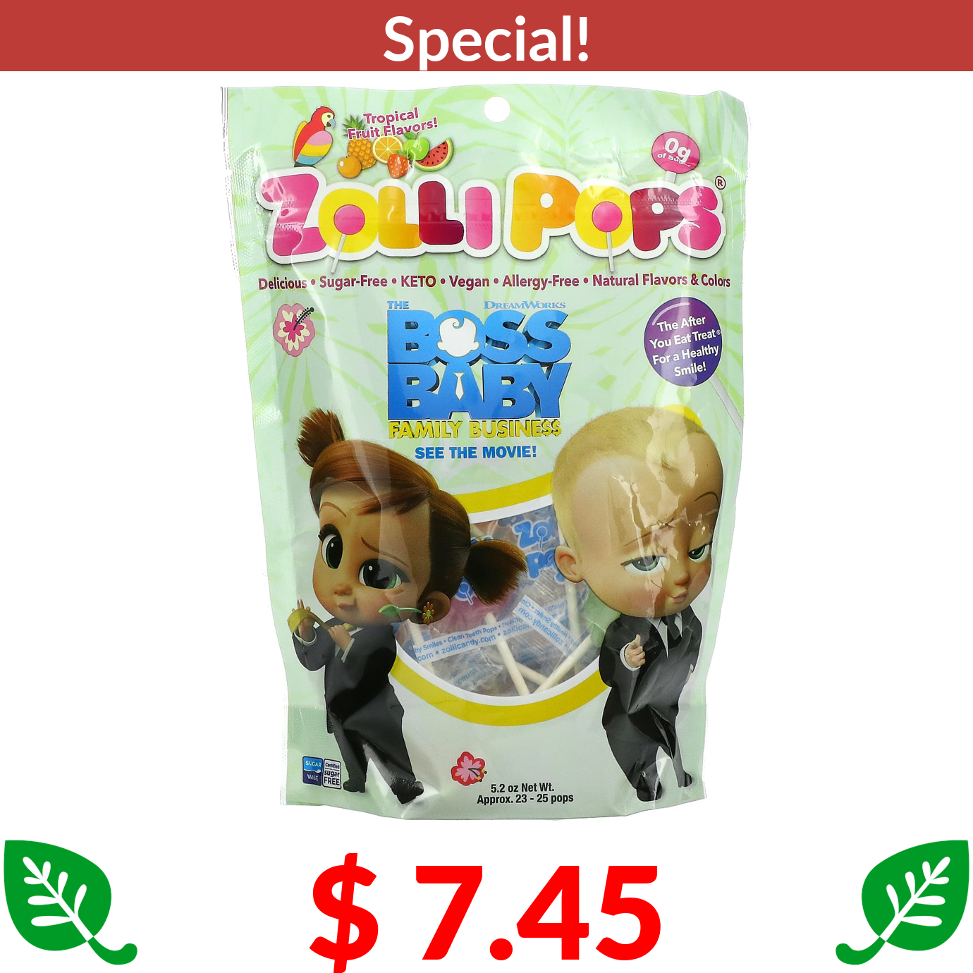 $ 7.45 Zollipops, The Clean Teeth Pops, Tropical Fruit, 5.2 oz