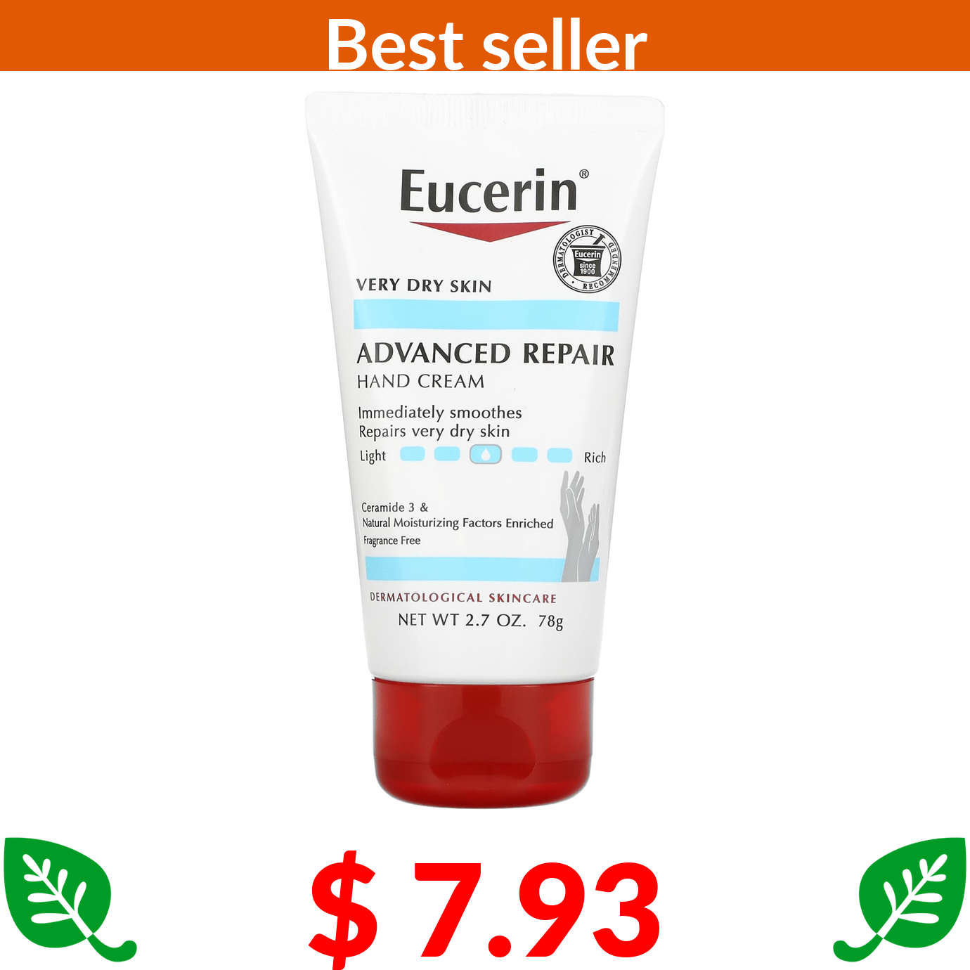 $ 7.93 Eucerin, Advanced Repair Hand Creme, Fragrance Free, 2.7 oz (78 g)