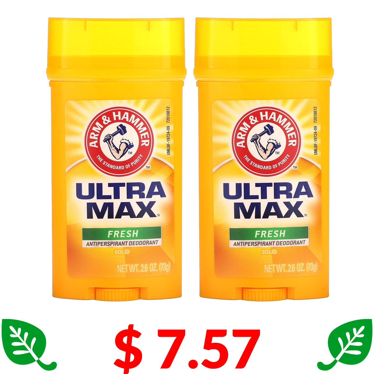 $ 7.57 Arm & Hammer, UltraMax, Solid Antiperspirant Deodorant, Fresh, 2 Pack, 2.6 oz (73 g) Each
