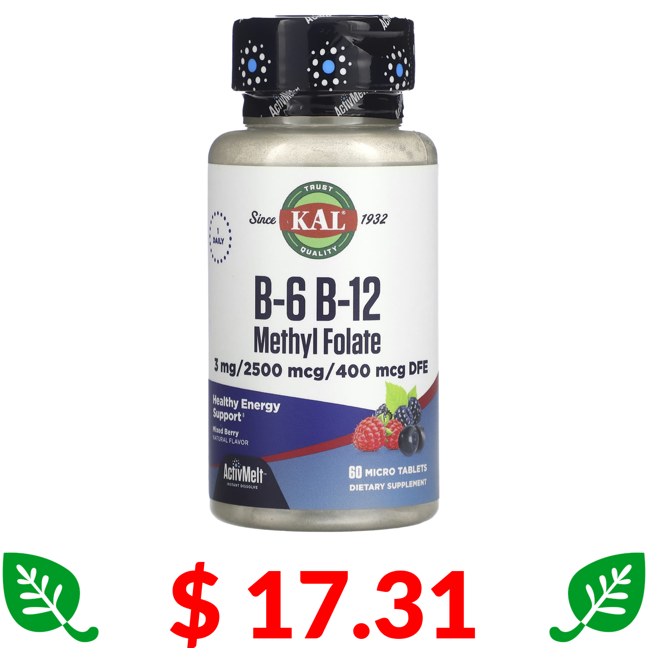 $ 17.31 KAL, B-6 B-12 Methyl Folate, Mixed Berry, 60 Micro Tablets