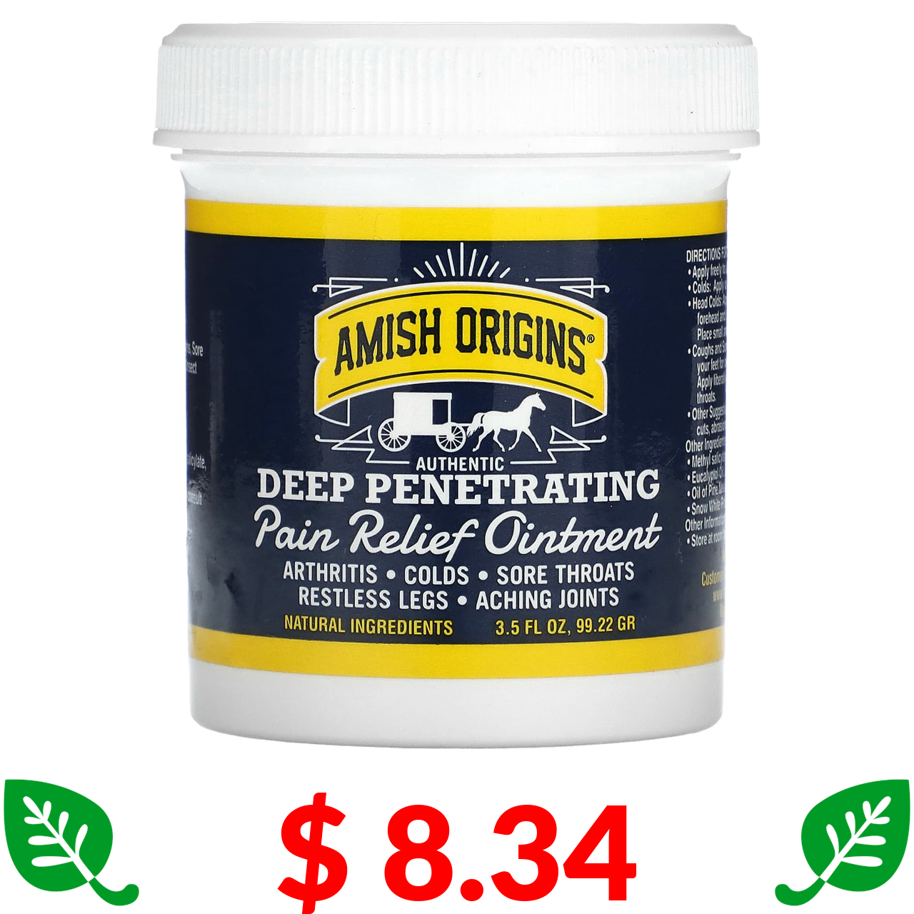 $ 8.34 Amish Origins, Authentic Deep Penetrating, Pain Relief Ointment, 3.5 fl oz (99.22 g)