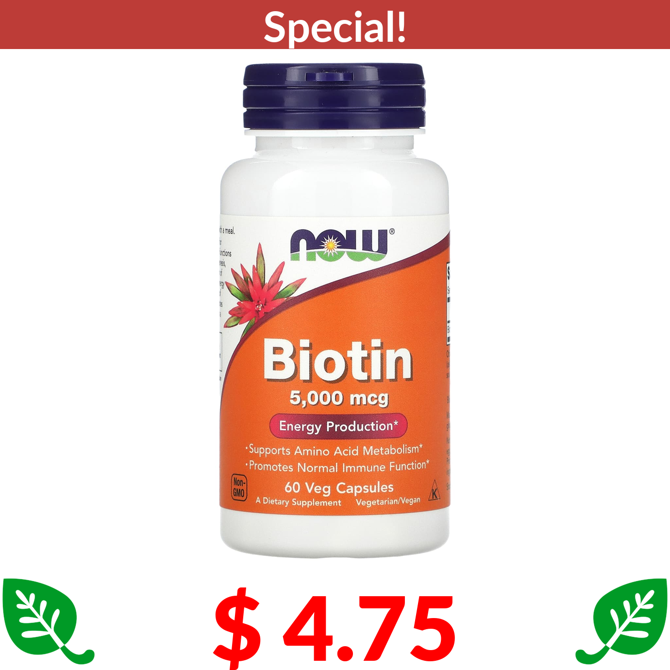 $ 4.75 NOW Foods, Biotin, 5,000 mcg, 60 Veg Capsules