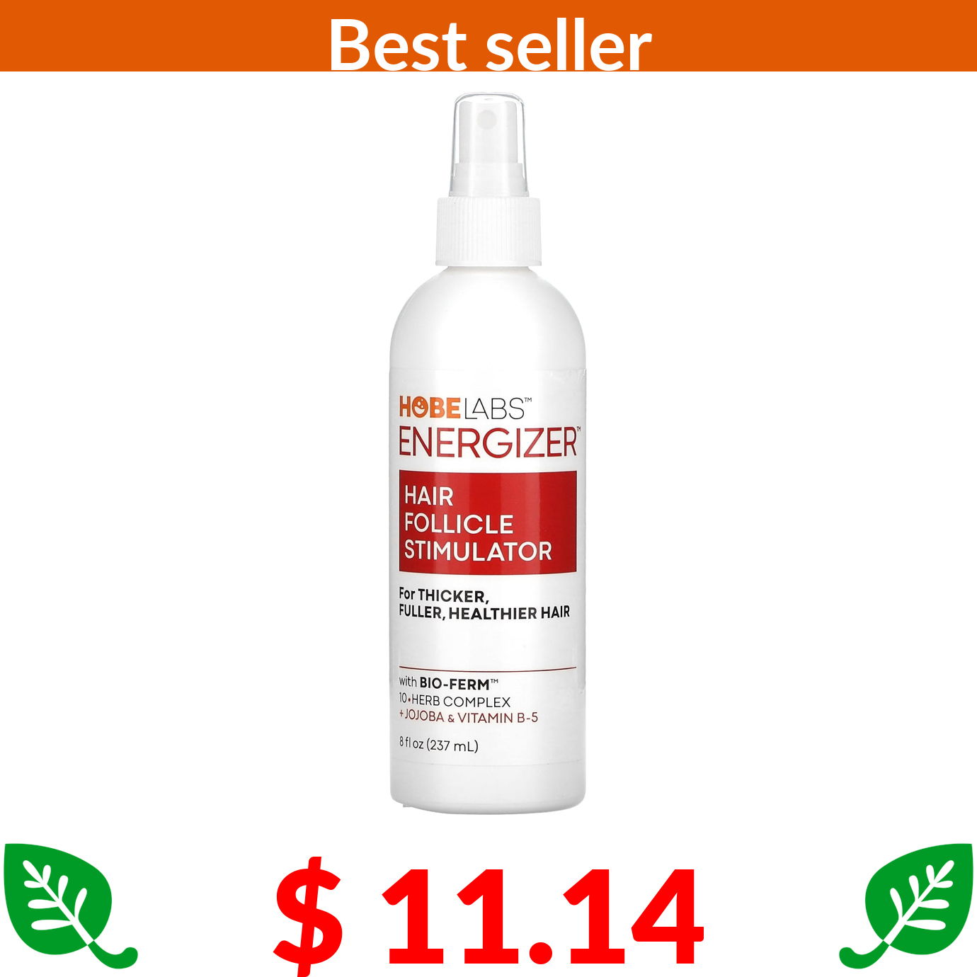 $ 11.14 Hobe Labs, Energizer, Hair Follicle Stimulator with Jojoba & Vitamin B-5, 8 fl oz (237 ml)