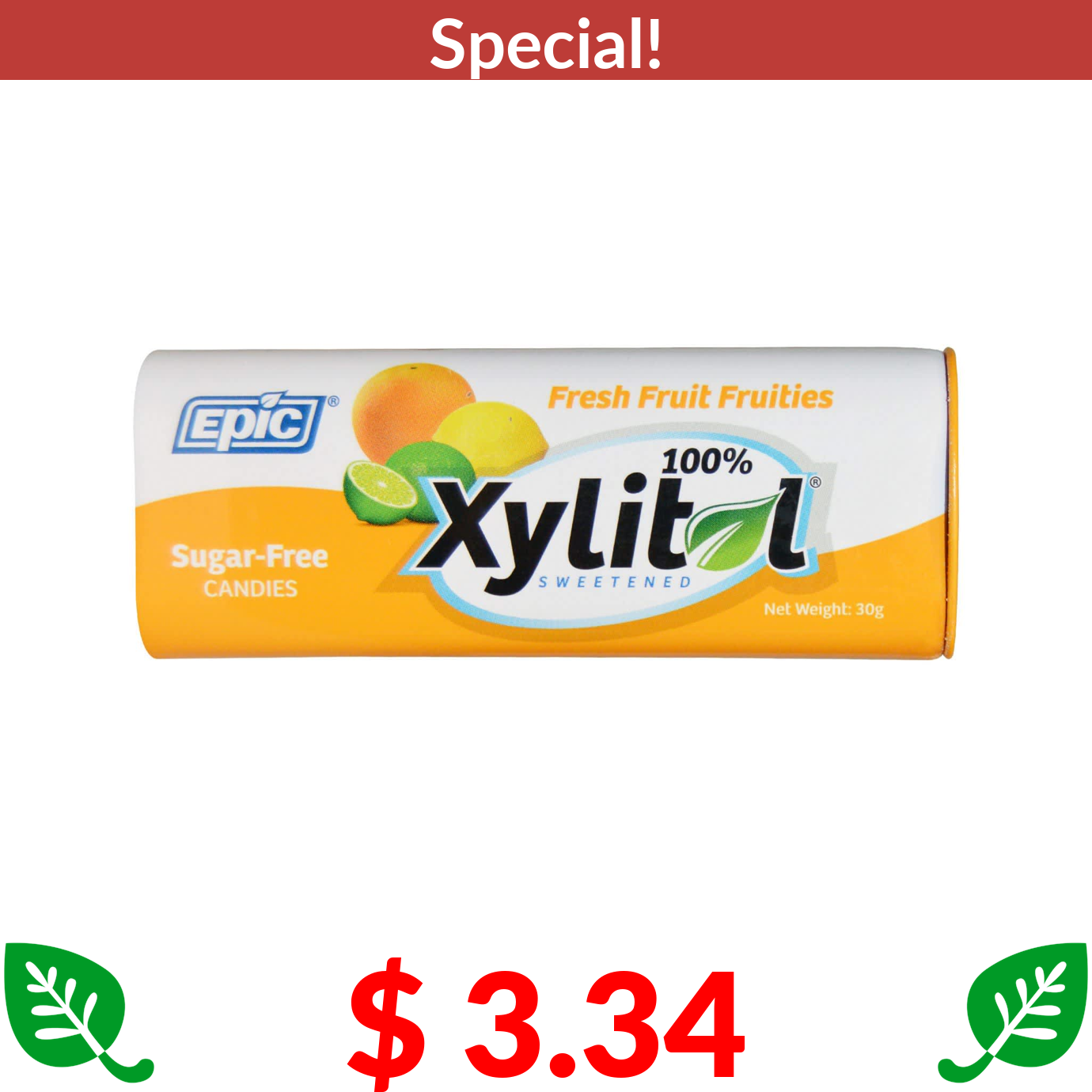 $ 3.34 Epic Dental, 100% Xylitol Sweetened, Fresh Fruit Fruities, Candies, Sugar-Free, 30 g