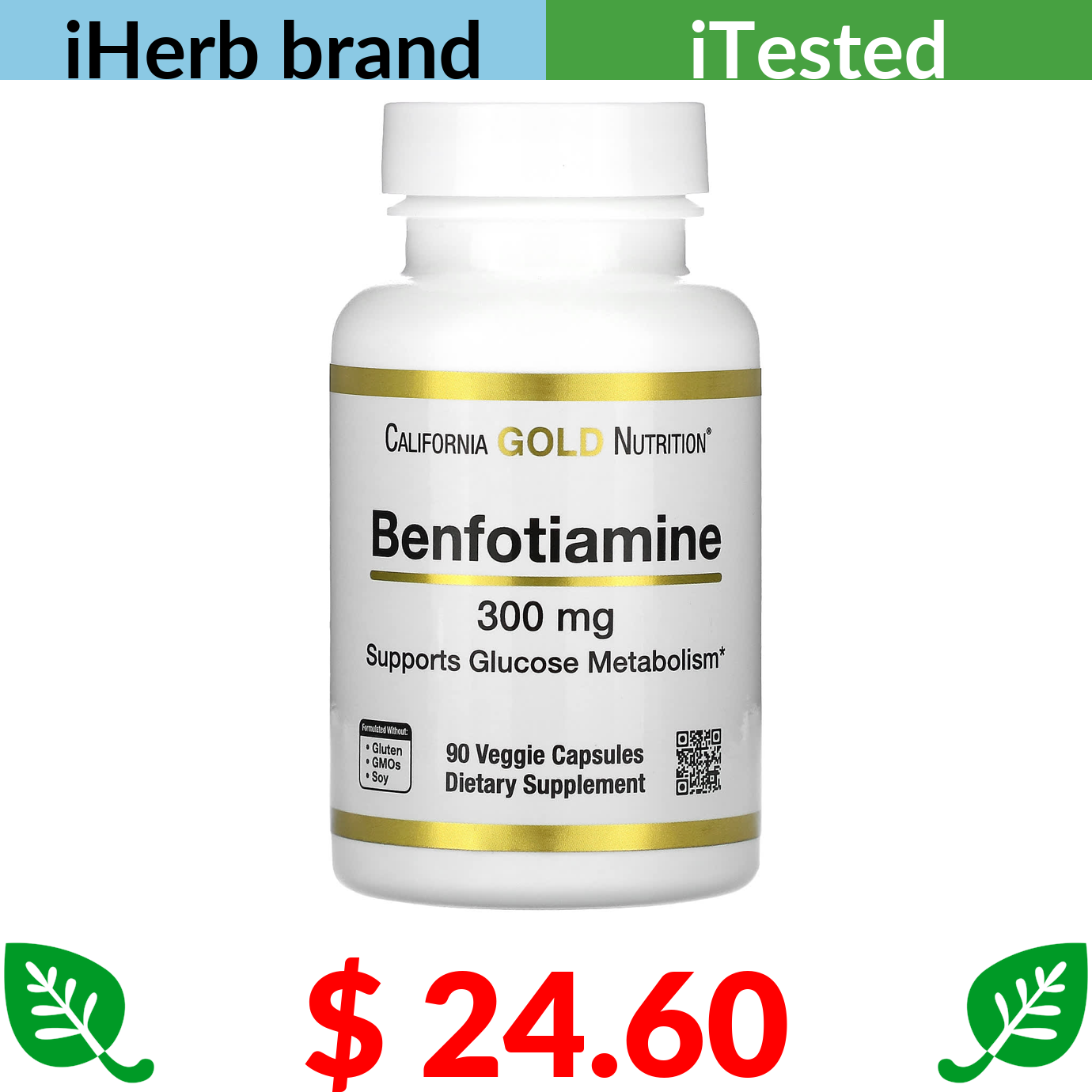 $ 24.60 California Gold Nutrition, Benfotiamine, 300 mg, 90 Veggie Capsules