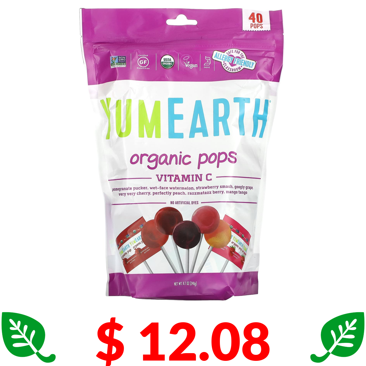 $ 12.08 YumEarth, Organic Pops, Vitamin C, Assorted, 40 Pops, 8.7 oz (248 g)