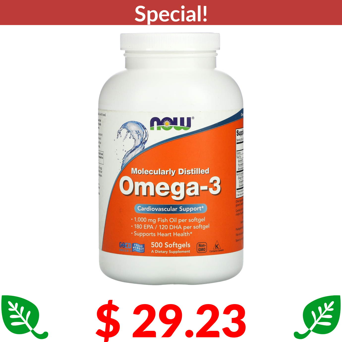 $ 29.23 NOW Foods, Omega-3, 500 Softgels