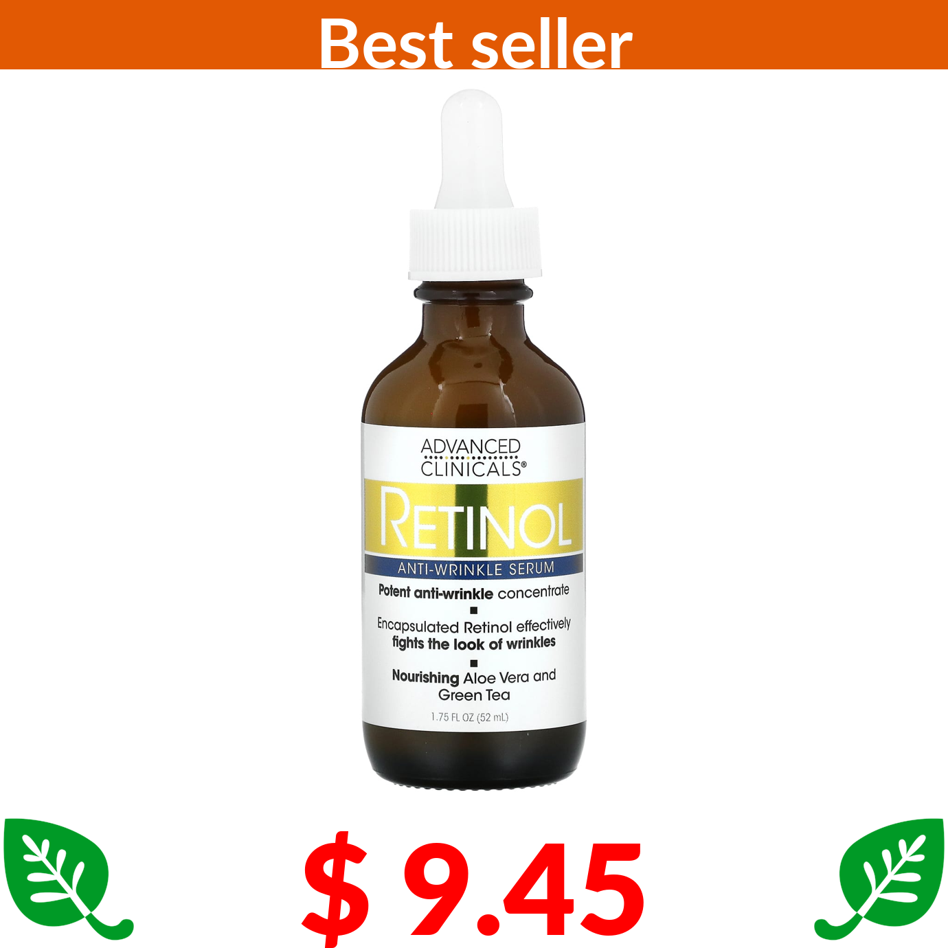 $ 9.45 Advanced Clinicals, Retinol Serum, Anti-Wrinkle, 1.75 fl oz (52 ml)