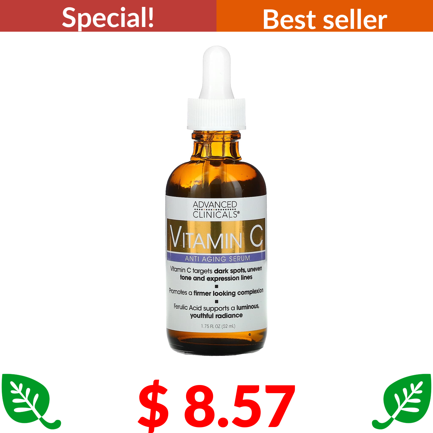 $ 8.57 Advanced Clinicals, Vitamin C, Anti Aging Serum, 1.75 fl oz (52 ml)