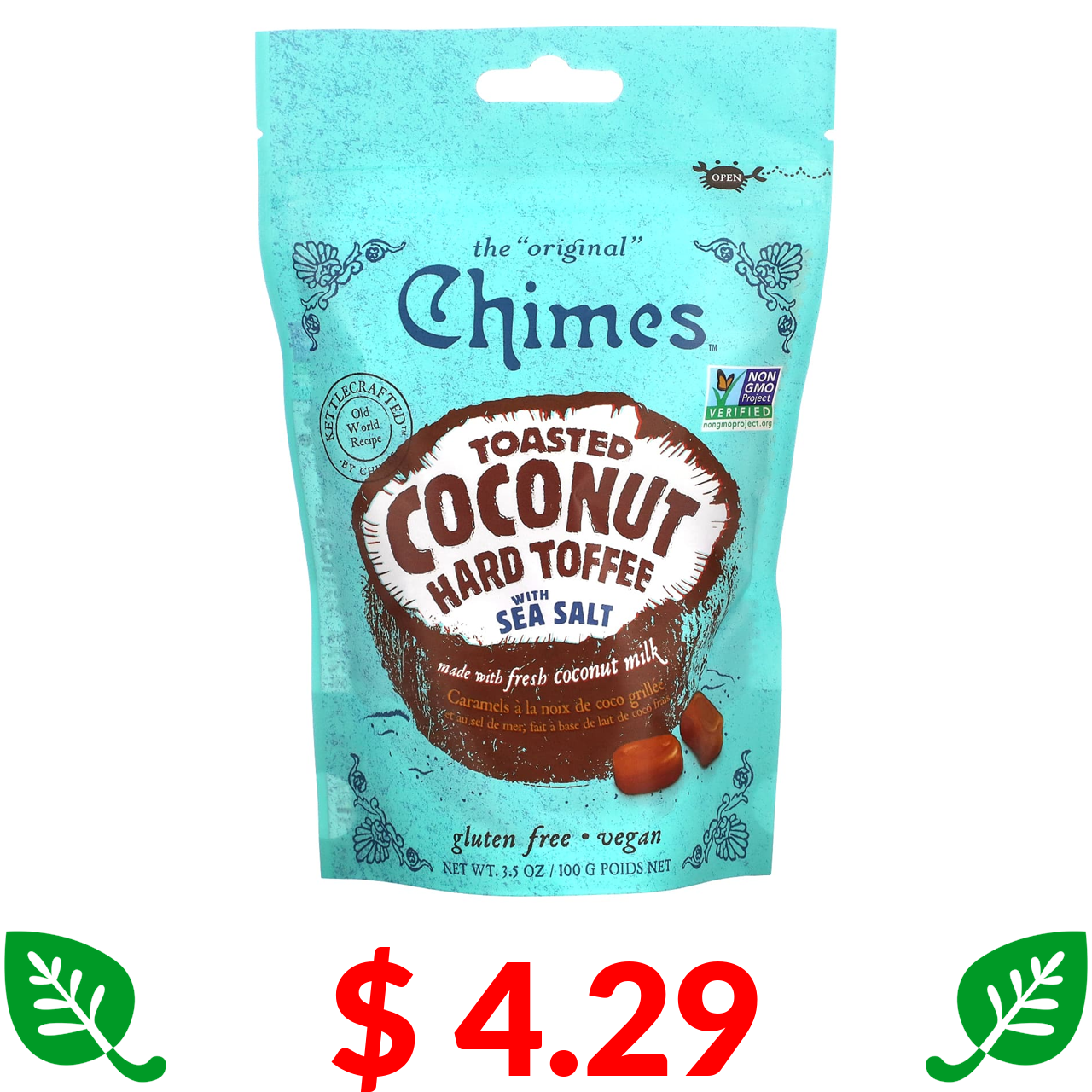 $ 4.29 Chimes, Toasted Coconut Hard Toffee with Sea Salt, 3.5 oz (100 g)