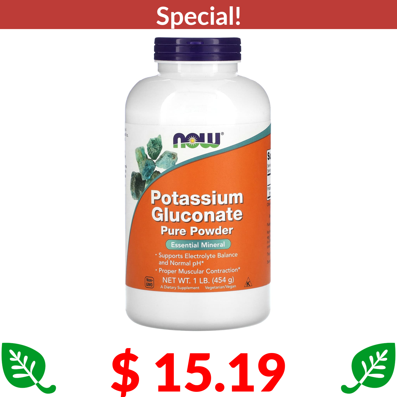 $ 15.19 NOW Foods, Potassium Gluconate Pure Powder, 1 lb (454 g)
