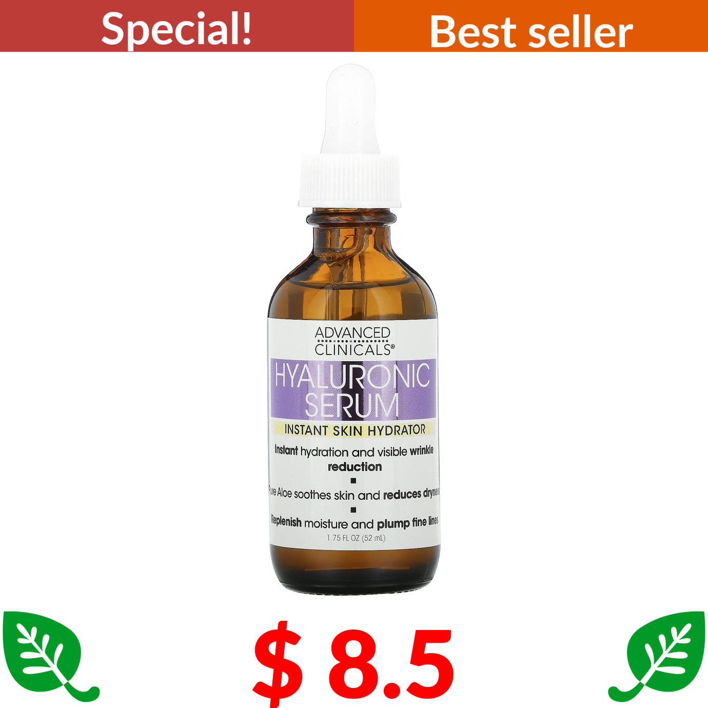 $ 8.5 Advanced Clinicals, Hyaluronic Serum, Instant Skin Hydrator, 1.75 fl oz (52 ml)