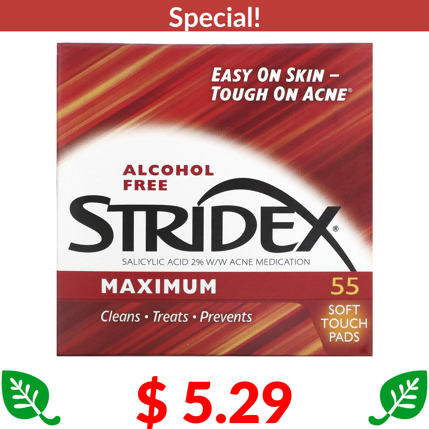 $ 5.29 Stridex, Maximum, Alcohol Free, 55 Soft Touch Pads