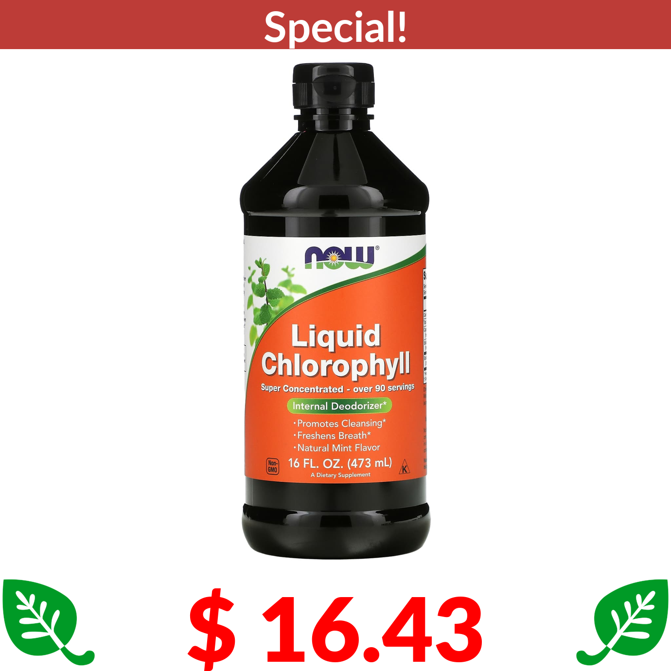 $ 16.43 NOW Foods, Liquid Chlorophyll, Natural Mint , 16 fl oz (473 ml)