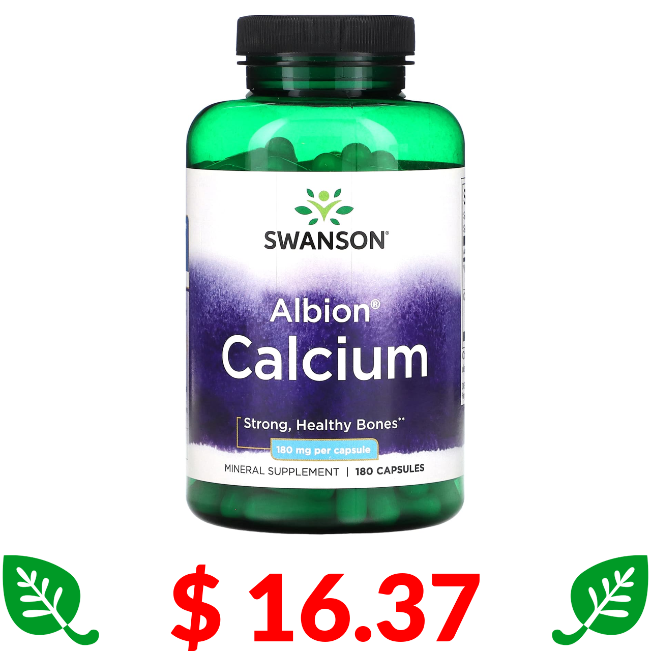 $ 16.37 Swanson, Albion, Calcium, 180 mg, 180 Capsules