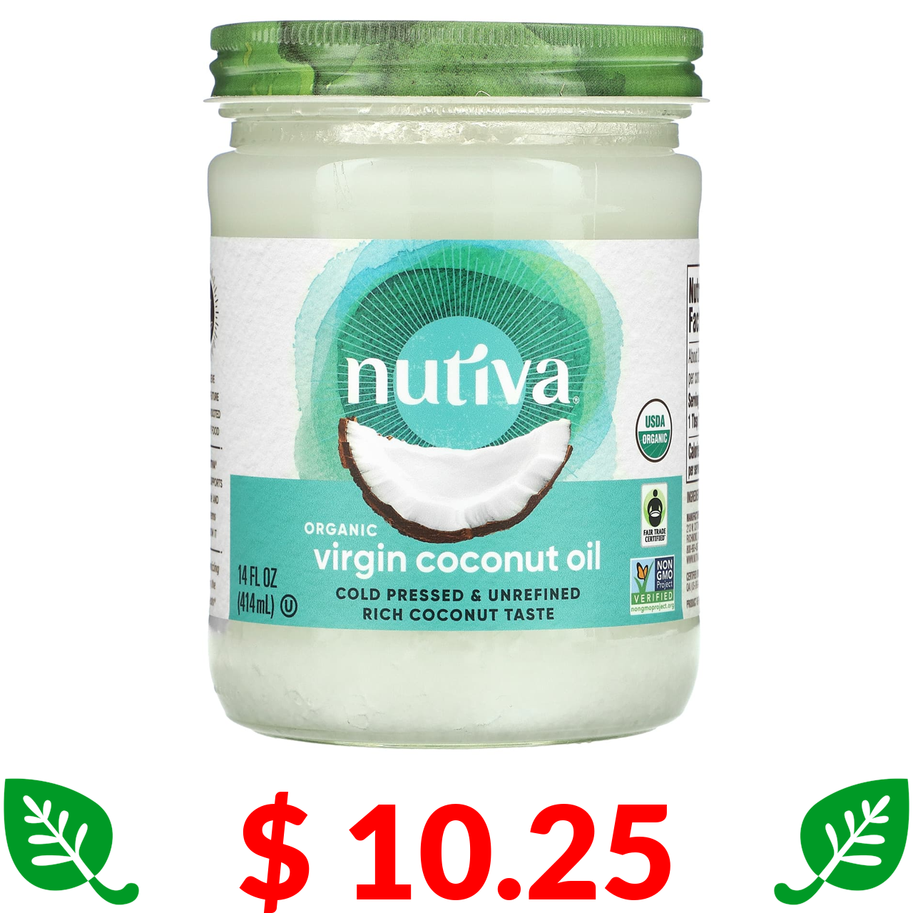 $ 10.25 Nutiva, Organic Virgin Coconut Oil, 14 fl oz (414 ml)