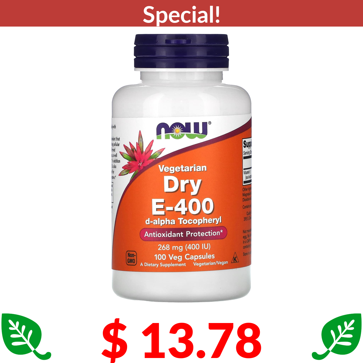$ 13.78 NOW Foods, Vegetarian Dry E-400, 268 mg (400 IU), 100 Veg Capsules