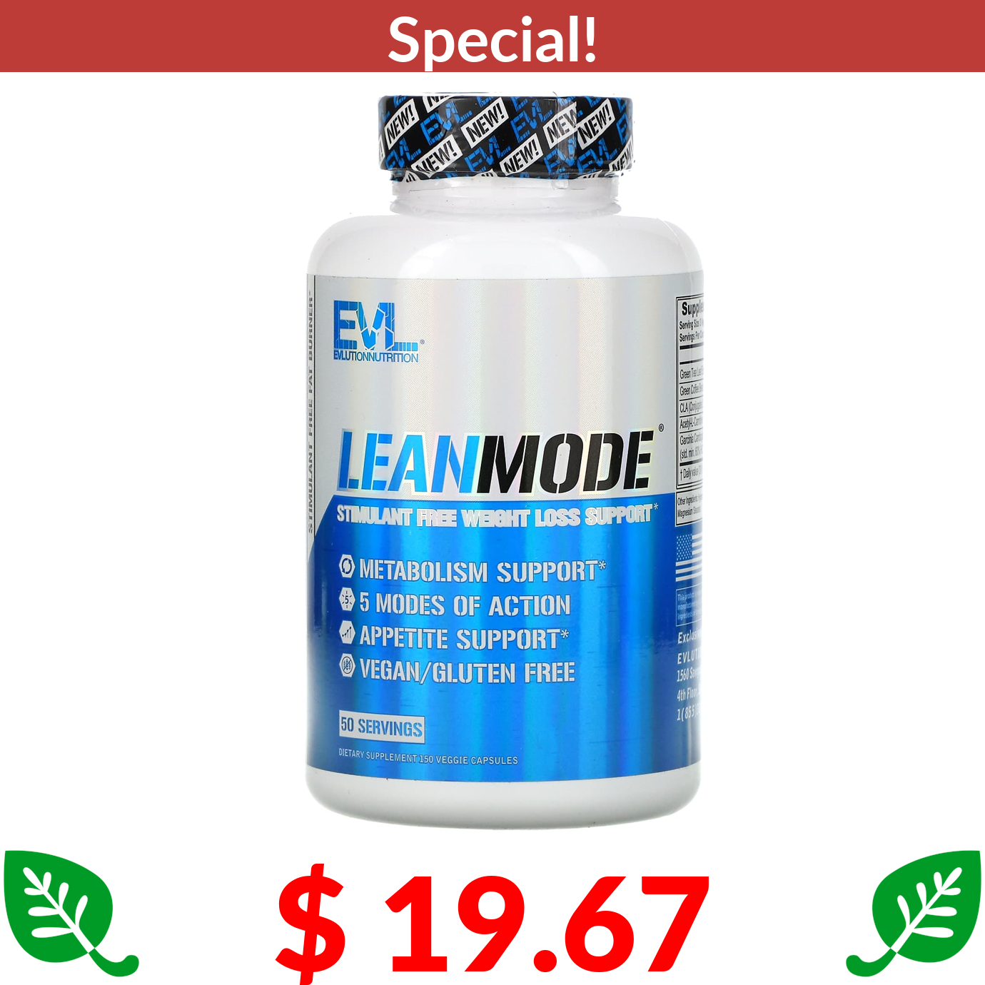 $ 19.67 EVLution Nutrition, LeanMode, Stimulant Free Weight Loss Support, 150 Veggie Capsules