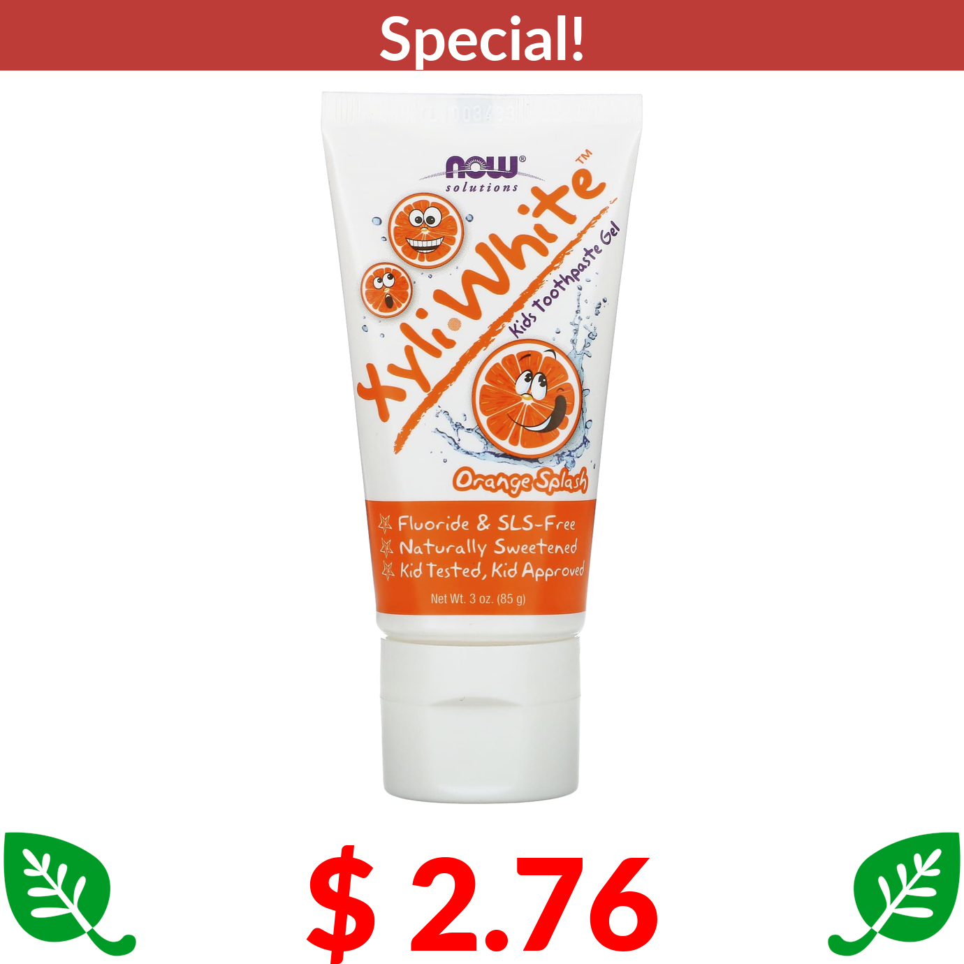 $ 2.76 NOW Foods, Solutions, Xyli-White, Kids Toothpaste Gel, Orange Splash, 3 oz (85 g)
