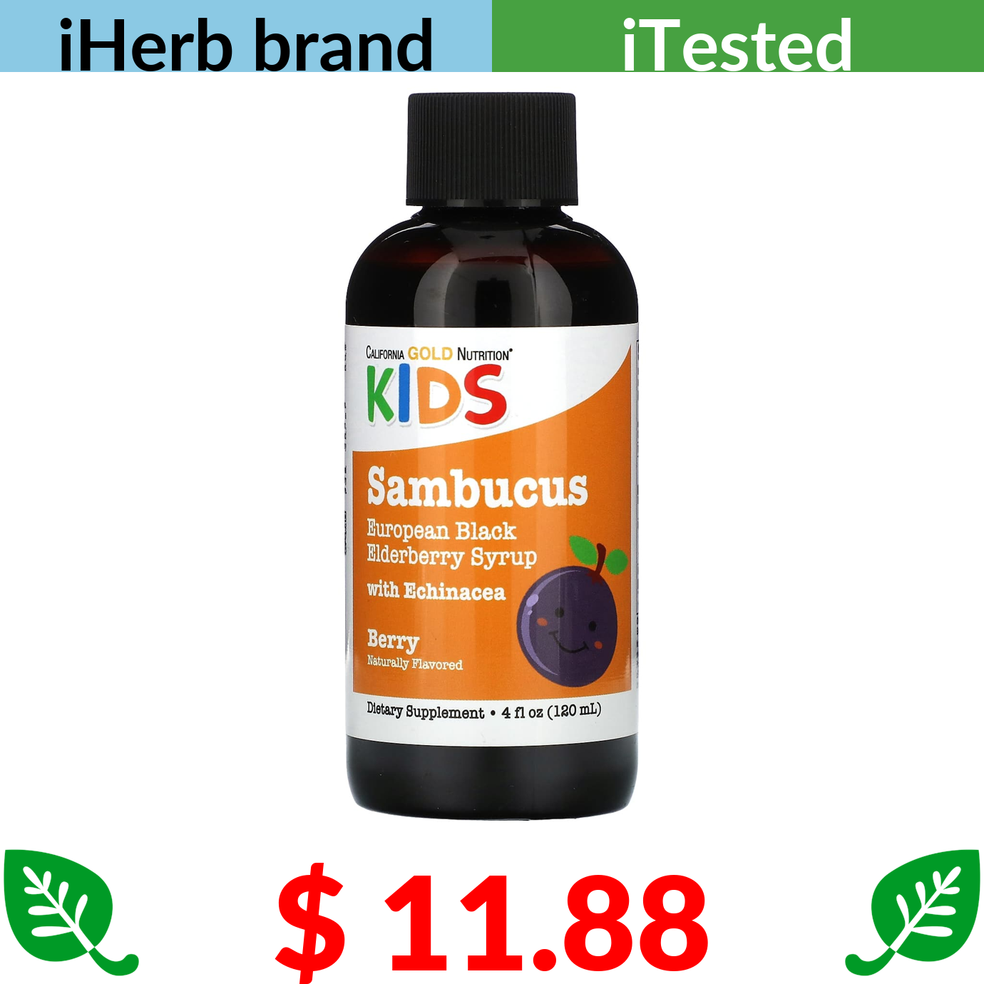 $ 11.88 California Gold Nutrition, Children Sambucus Elderberry Syrup, 4 fl oz (120 ml)
