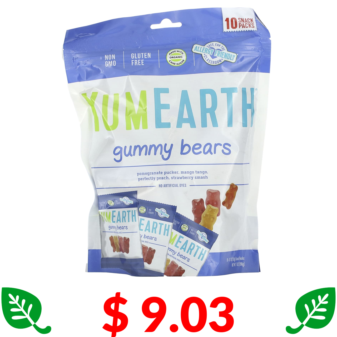 $ 9.03 YumEarth, Gummy Bears, Assorted Flavors, 10 Snack Packs, 0.7 oz (19.8 g) Each